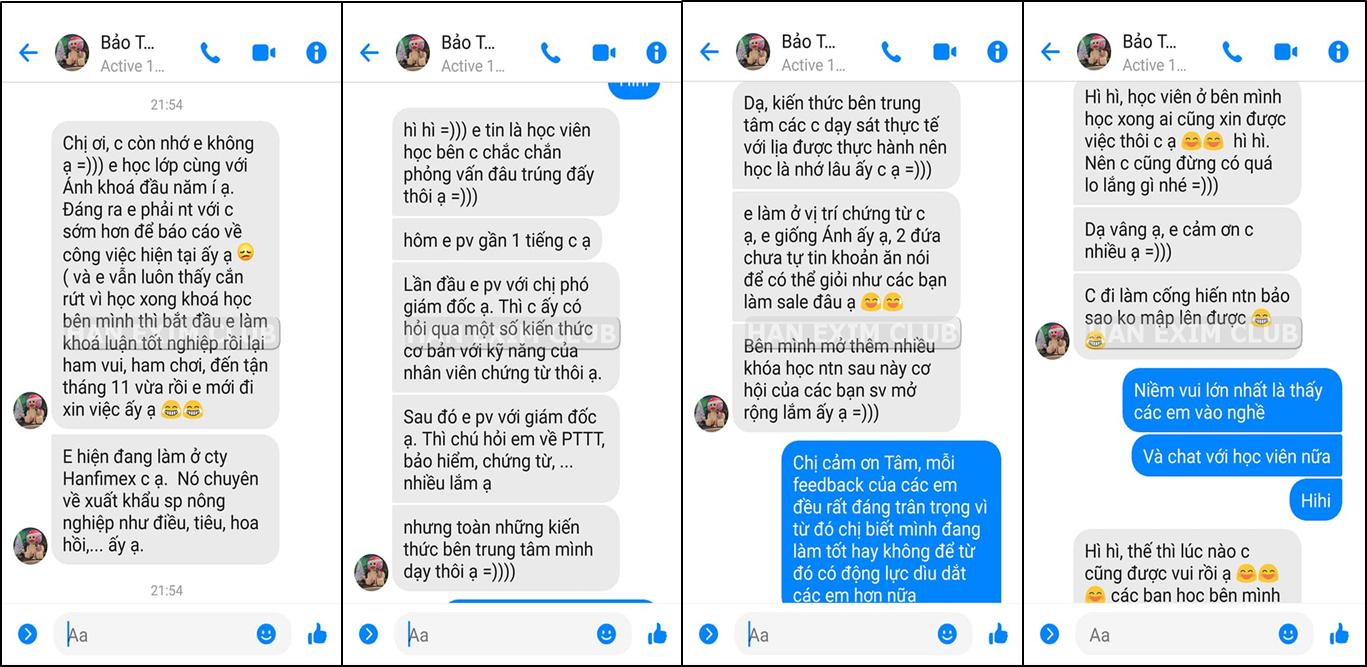.- HAN EXIM không phải là trung tâm đào tạo quy mô nhất, hoành tráng nhất tại Việt Nam, nhưng lại là địa chỉ số 1 được các bạn học viên “truyền tai” nhau và nhận nhiều phản hồi tích cực, nhiều học viên giới thiệu bạn bè học tiếp, xây dựng cộng đồng tin cậy